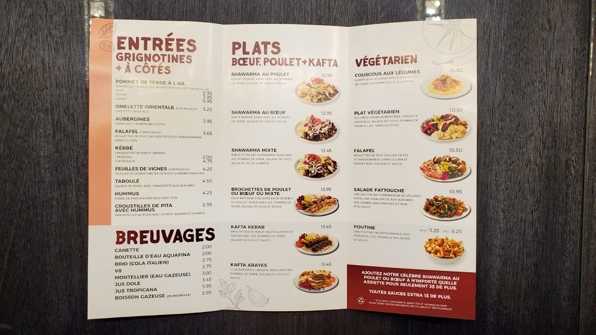 Restaurant Boustan in Montreal offers a vibrant menu that masterfully celebrates Middle Eastern and Mediterranean flavors. Their signature Chicken and Beef Shawarma plates come perfectly marinated, served alongside rice, golden potatoes, fresh coleslaw, and a variety of rich sauces. For vegetarians, the Falafel Plate presents crisp, gluten-free chickpea balls, while the Vegetarian Platter showcases a harmonious blend of stewed vegetables, eggplant, oriental omelette, garlic potatoes, tabbouleh, and rice – a true feast of wholesome, layered tastes.